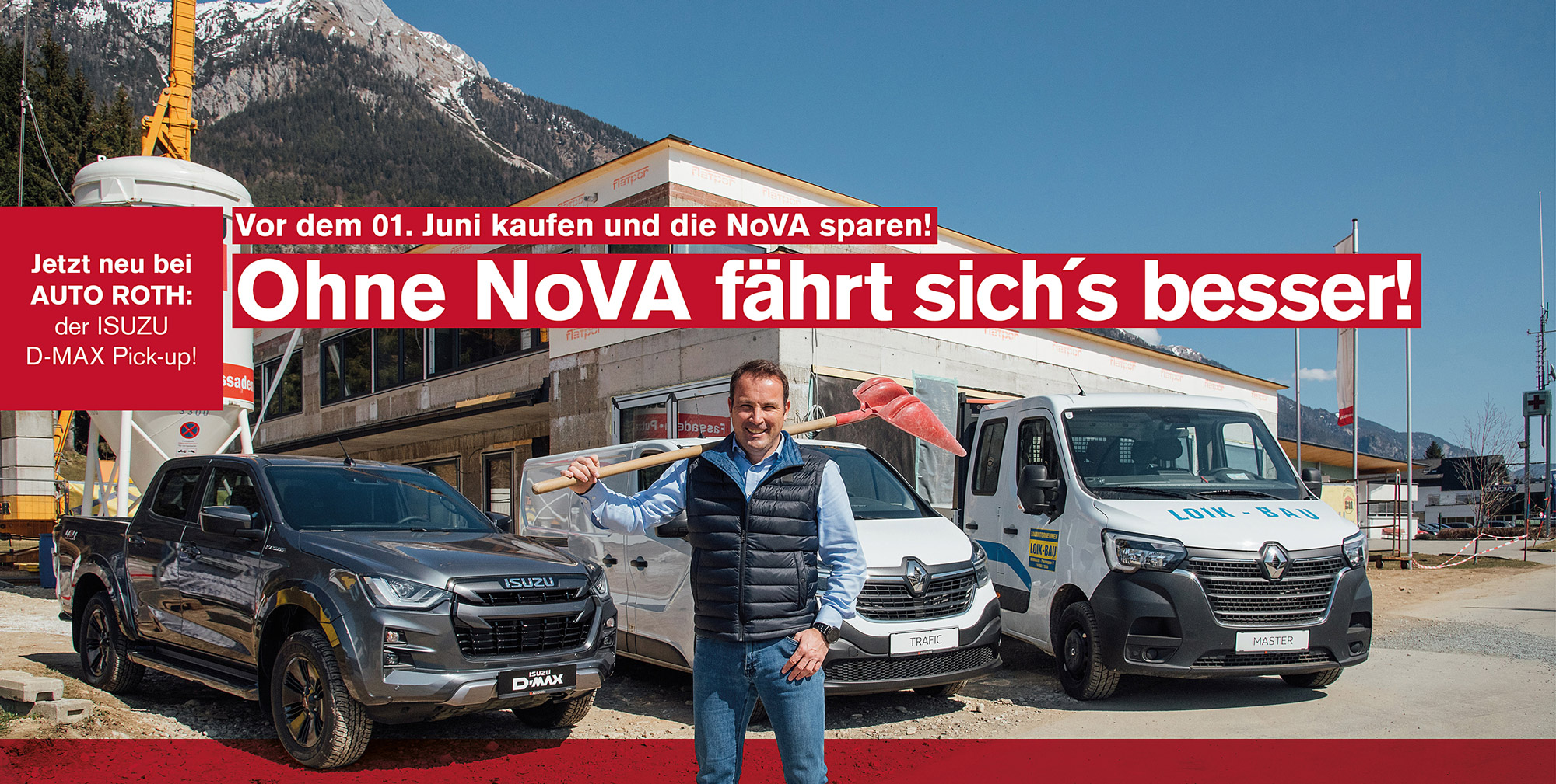 Ab 01.07.2021 kommt die NoVA auch für Transporter – jetzt noch einen unserer RENAULT Kangoo, Trafic, Master oder ganz neu den ISUZU D-MAX sichern!
