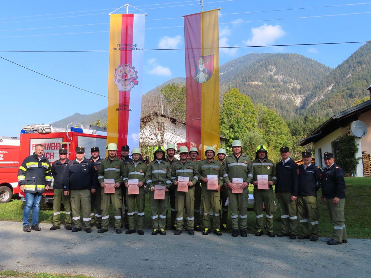 Elf Feuerwehrleute des Bezirkes Hermagor nahmen am 14. und 15. Oktober 2023 erfolgreich an den Technischen Leistungsprüfungen in Bronze in Radnig im Bezirk Hermagor und in Silber in Drobolach im Bezirk Villach-Land teil.