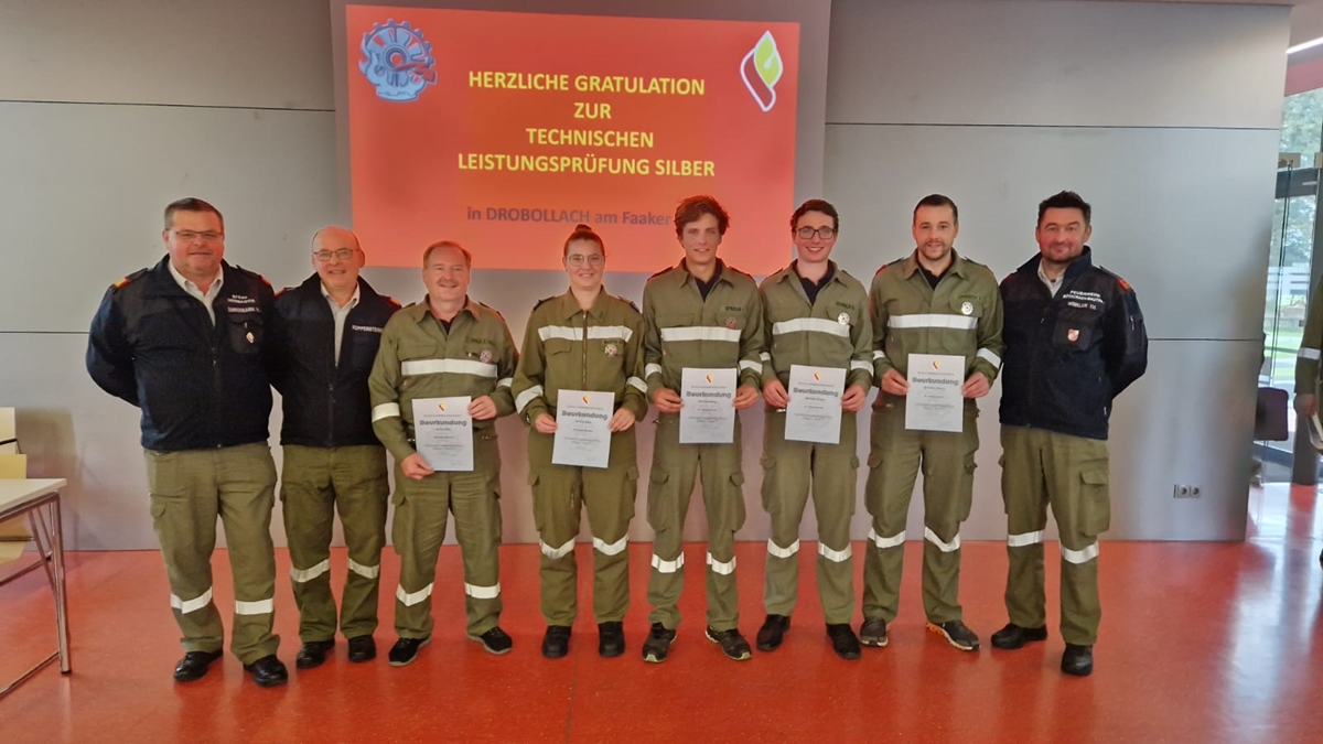 Eine Gruppe aus der Marktgemeinde Kötschach-Mauthen mit Gabriel Seiwald, Florian Lamprecht und Fabian Strieder von der FF St. Jakob im Lesachtal sowie Ermin Wald und Sonja Martin von der FF Kötschach-Mauthen erlangte am 15. Oktober in Drobollach das Technische Leistungsabzeichen in Silber. Für diesen Gruppenbewerb ist die absolvierte Technische Leistungsprüfung in Bronze bereits eine Voraussetzung.