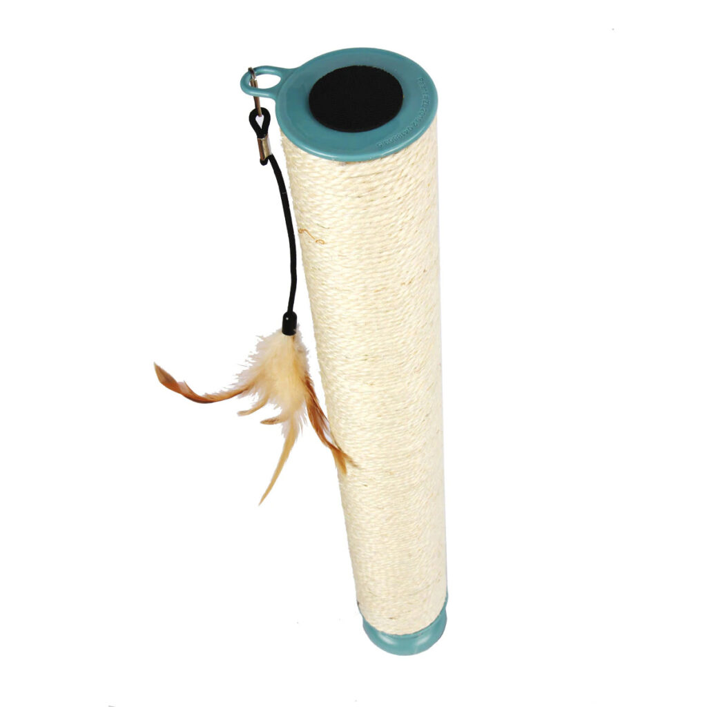 Die Kratzsäule beansprucht nur wenig Platz in Ihrem Zuhause oder im Büro und verwandelt ungenutzten Raum in eine Kratz- und Spielfläche für Ihre Katze. Die höhenverstellbare Kratzsäule kann einfach zwischen Tischplatte und Boden mittels Drehsystem fixiert werden. Für die Montage muss weder gebohrt noch geschraubt werden. Bei der Classic Variante ist der untere Bereich mit Textil umwickelt. Die Kratzsäule Premium ist komplett mit einem Sisal-Seil (Natur-Faser) umwickelt.